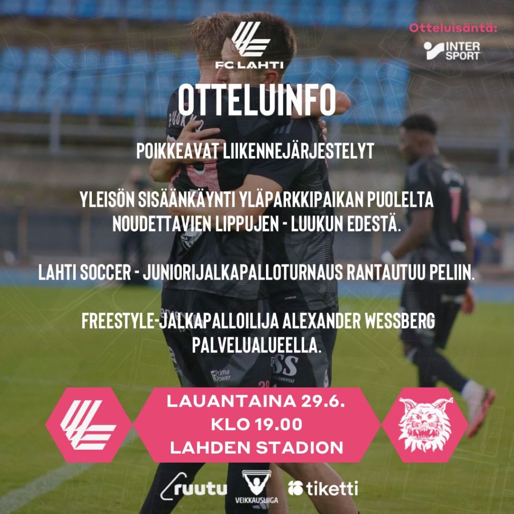 Tasapelipiste nosti lahtelaiset FC Interin ohi yhdeksänneksi. Voitolla Lahdella on mahdollisuus nousta kaksi sijaa aivan ylemmän loppusarjan tuntumaan. Voittoa Lahti joutuu hakemaan varmasti ilman Daniel Koskipaloa ja Topias Inkistä. Pablo Andrade palaa suurella todennäköisyydellä kokoonpanoon.