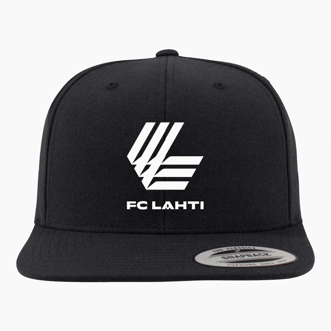 Klassinen musta The Classic Yupoong snapback lippis brodeeratulla FC Lahden logolla.