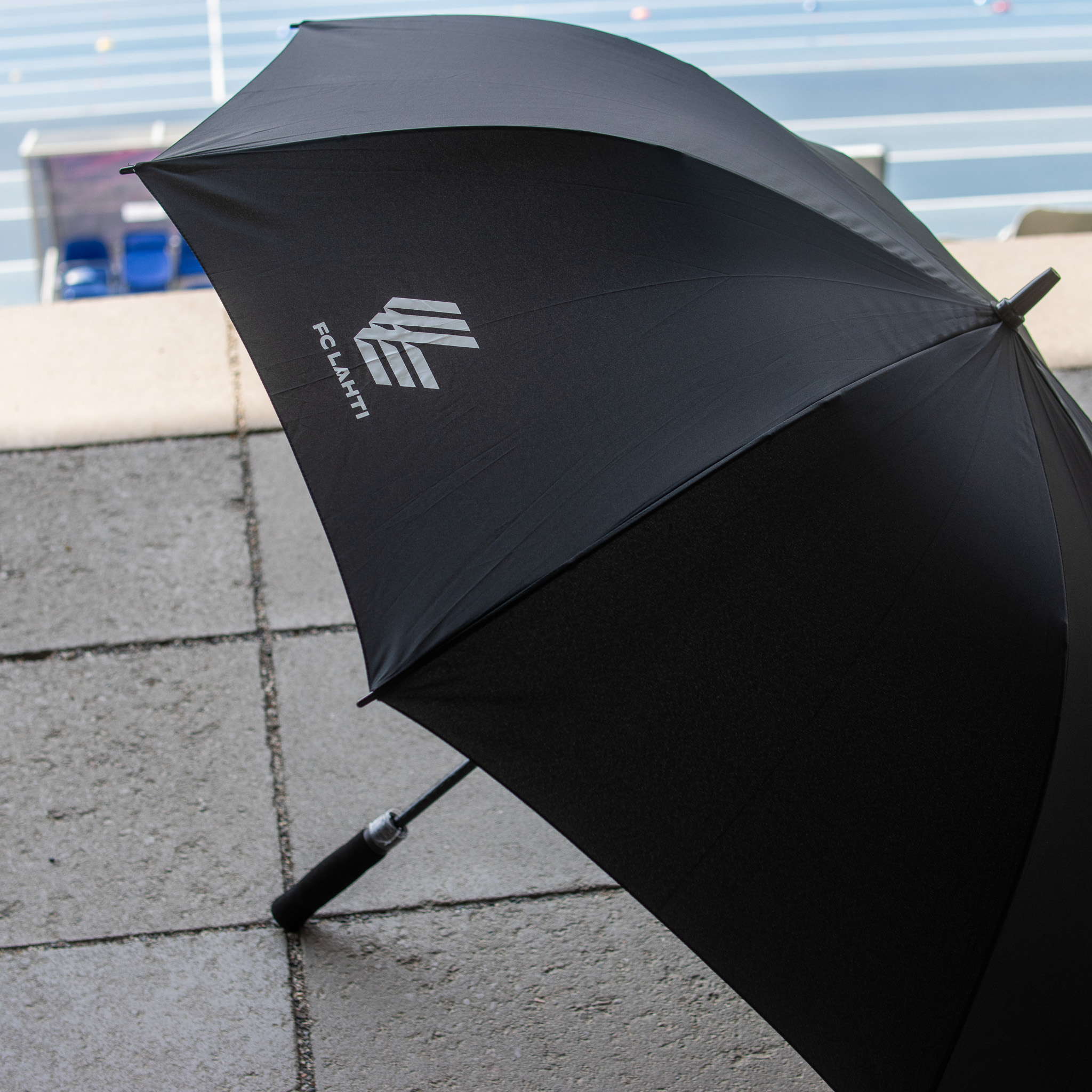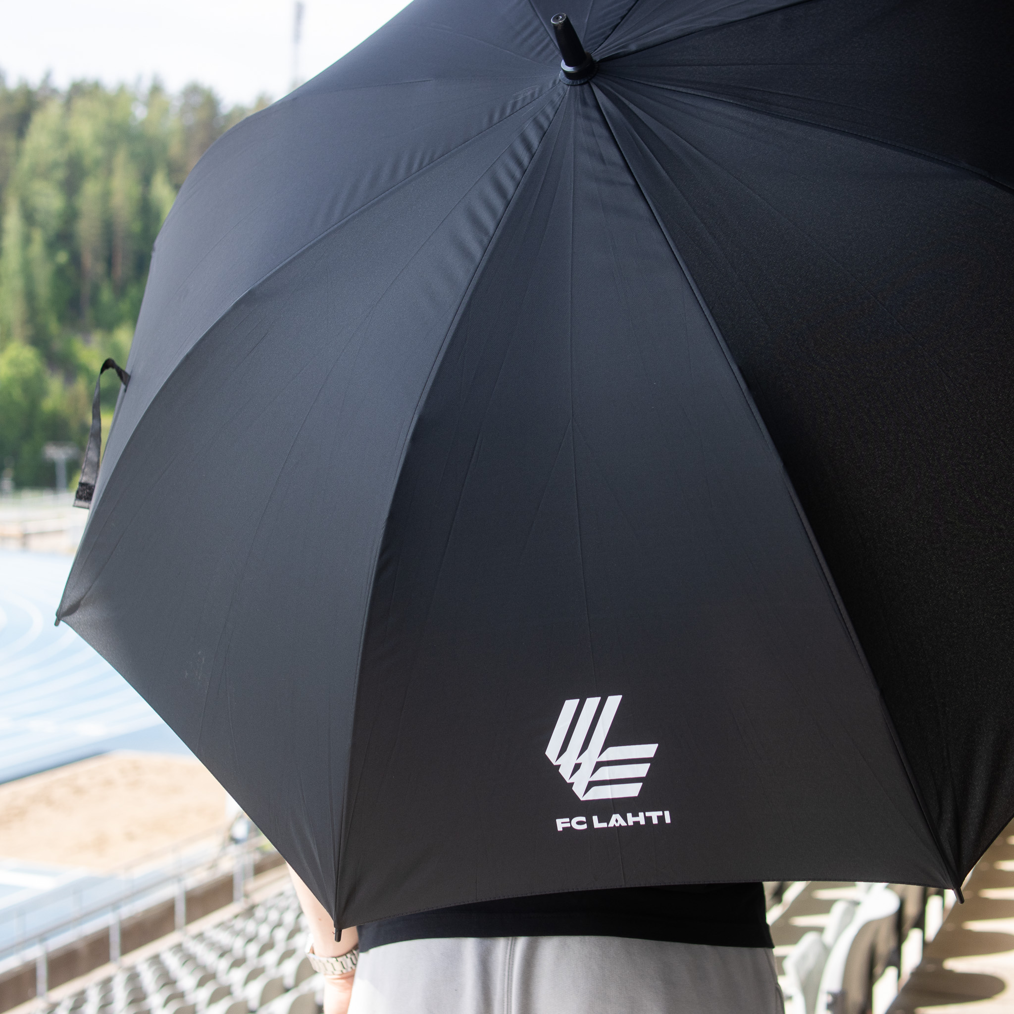 FC Lahti -golf-sateenvarjo tyyliä ja suojaa joka säähän. Kestävä ja musta sateenvarjo, jossa FC Lahden logo kertomassa kaiken oleellisen.