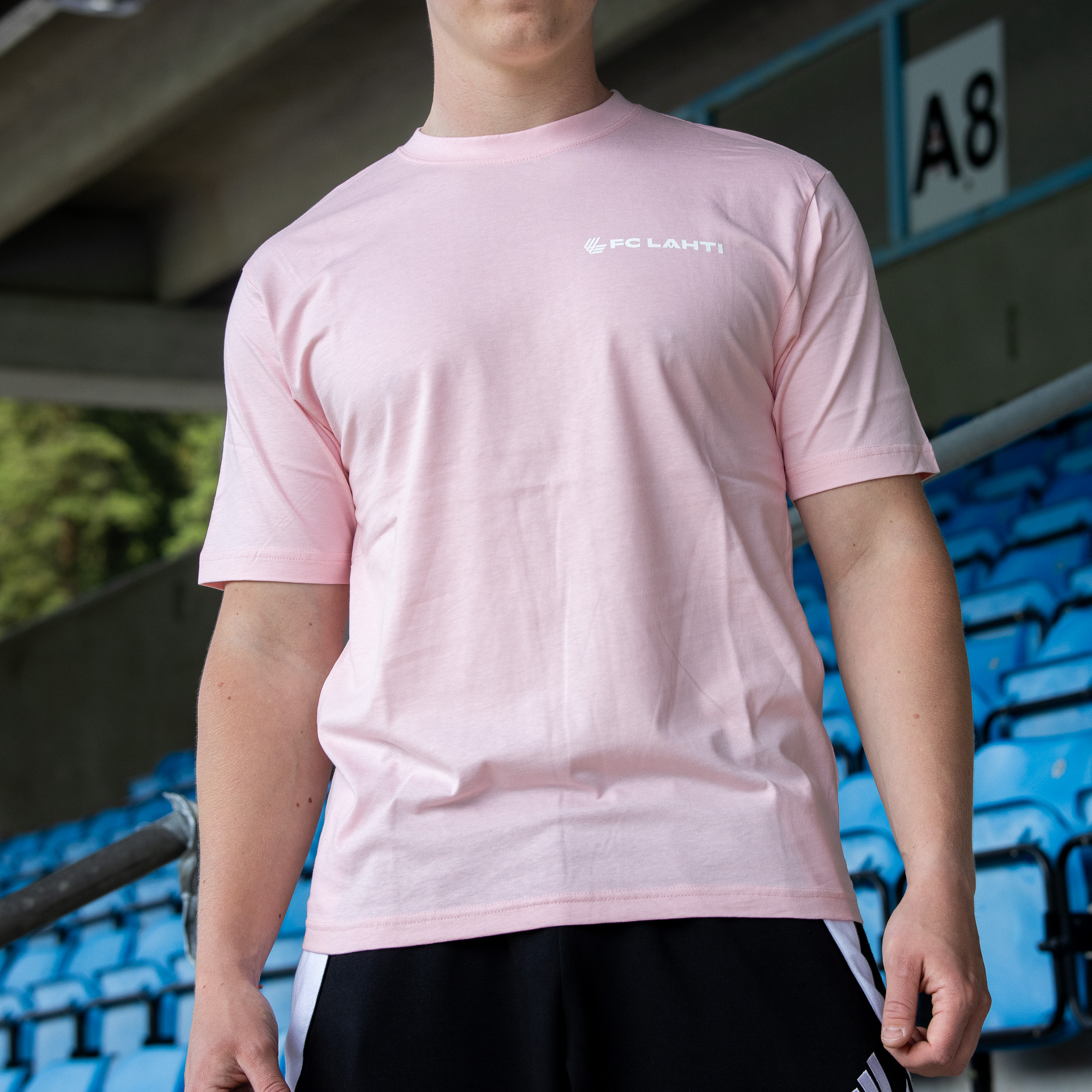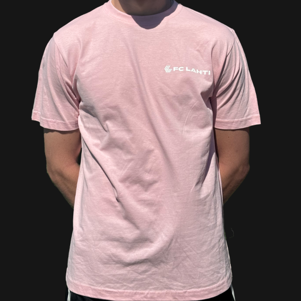 FC Lahden logolla varustettu tyylikäs vaaleanpunainen t-paita. Materiaali on laadukasta orgaanista puuvillaa.