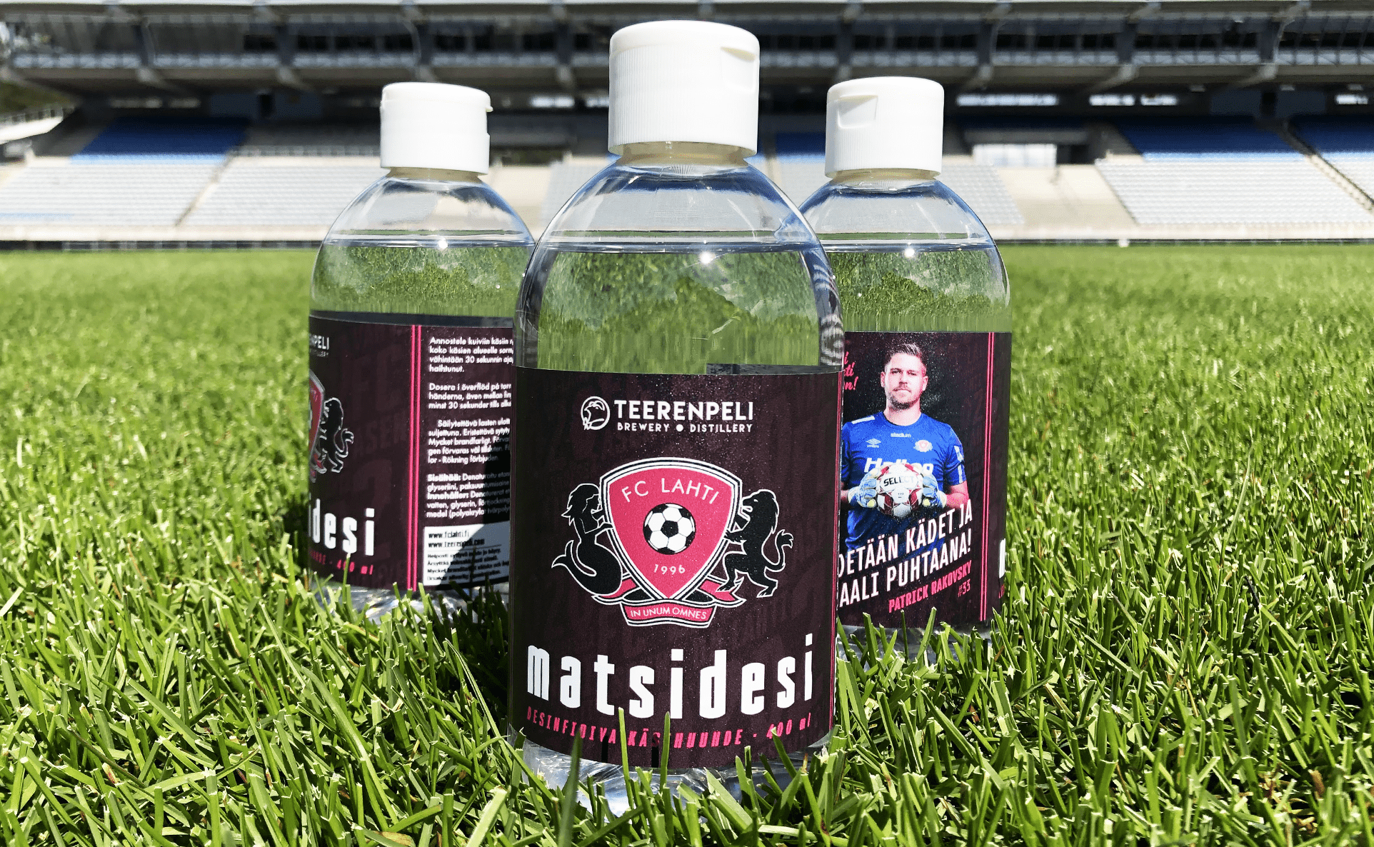 – Meneillään oleva terveydellinen ja taloudellinen kriisi koskettaa kaikkia ja siitä selviytyminen vaatii yhteispeliä. Yhteistyökumppanimme Teerenpeli on hienosti pitänyt vaikeasta tilanteesta huolimatta pyörät pyörimässä ja halusimme yhteistyössä tuoda markkinoille paikallista käsidesiä myyntiin FC Lahden väreissä. Käsihygieniasta huolehtiminen tulee jatkossa korostumaan myös ottelutapahtumissamme. Jos fanituotehylly on jo tämän vuoden tuotteista täynnä, niin nyt on uudenlainen mahdollisuus tukea seuraa ja paikallista toimijaa toimitusjohtaja Juho-Matti Heikari kommentoi uutuustuotetta.