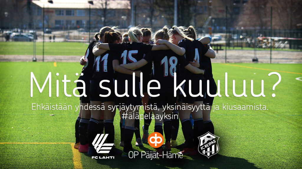 Jalkapalloseurojen perustehtäviin kuuluu nuorten vastuullinen kasvattaminen. Syrjäytyminen, yksinäisyys ja kiusaaminen ovat aitoja ongelmia myös Päijät-Hämeessä. FC Lahden, FC Reippaan ja OP Päijät-Hämeen #äläpelaayksin-yhteistyö keskittyy näihin teemoihin kaudella 2023.