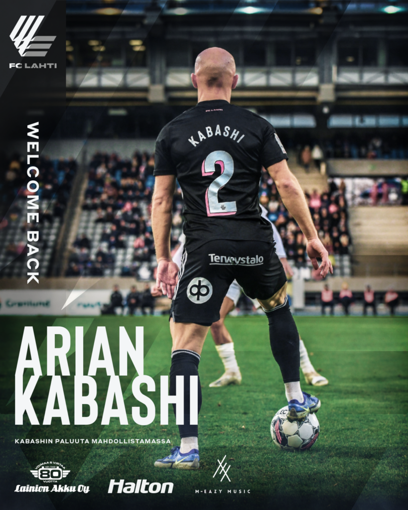 Kesken viime kauden FC Lahden sarjapaikkaa pelastamaan saapunut sveitsiläiskosovolainen toppari Arian Kabashi jatkaa Lahdessa myös tulevalla kaudella. Viime kaudella 26-vuotias toppari pelasi yhdeksän liigaottelua ja molemmat karsintaottelut alusta loppuun. Kabashin sopimus on yksivuotinen.