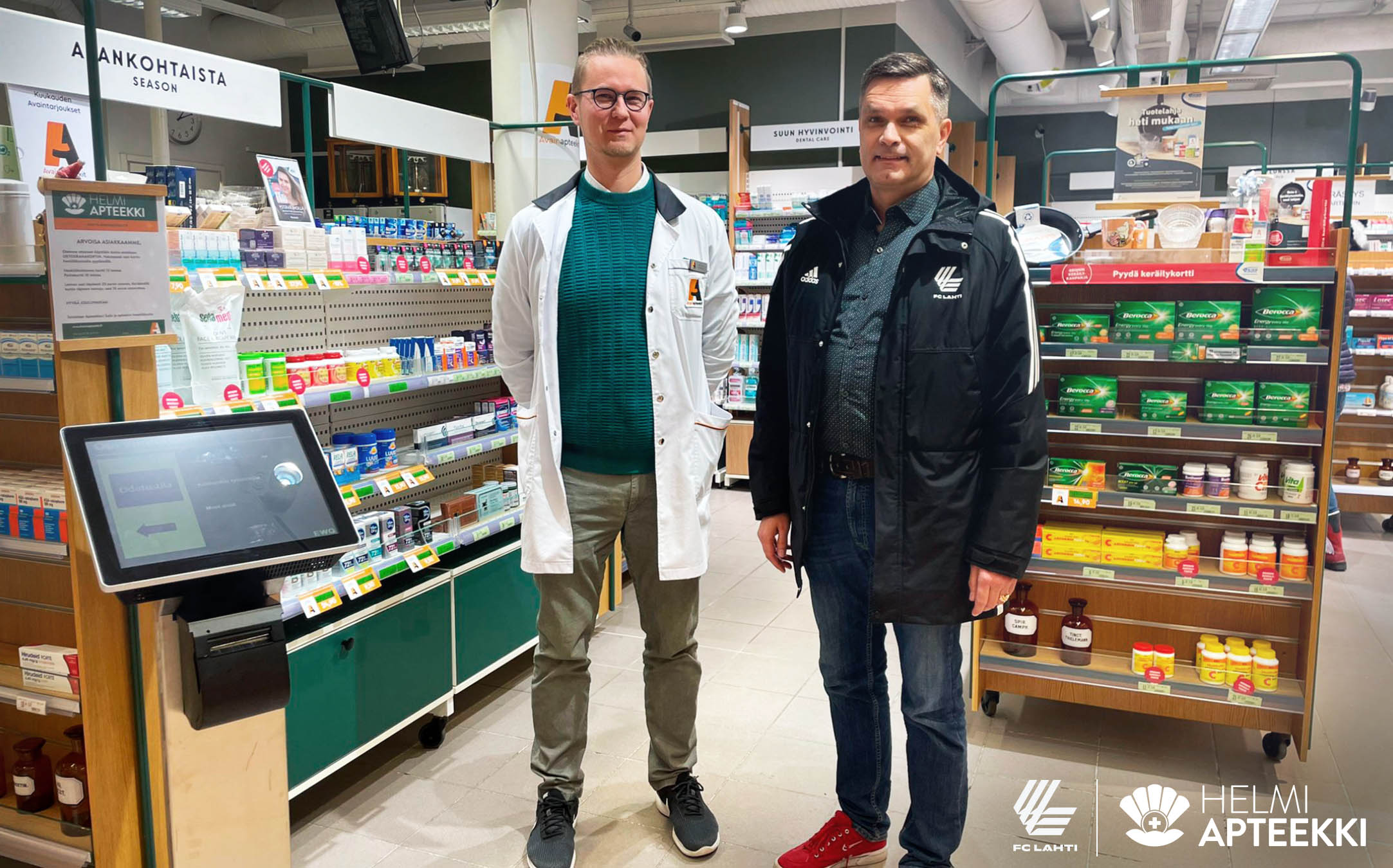 FC Lahti on solminut yhteistyösopimuksen paikallisen Helmi Apteekin kanssa. Molempien osapuolten tavoitteena on pitkäjänteinen yhteistyö, joka tukee pelaajien hyvinvointia ja sujuvaa pelaajan arkea. Helmi Apteekki on helposti saavutettavalla paikalla Sokoksen Hämeenkadun puolella.