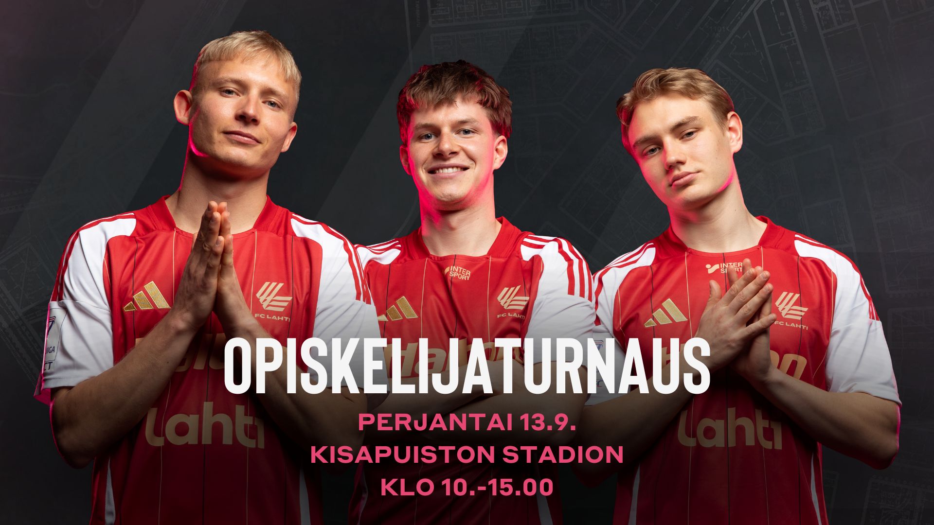 FC Lahti järjestää yhteistyössä Salpauksen, opiskelijakunta KOEn ja ylioppilaskunta LTKY:n kanssa opiskelijoiden futisturnauksen perjantaina 13.9. Turnaus on avoin kaikille LAB:n, LUT:n ja Salpauksen opiskelijoille taustoihin katsomatta ja mukaan voi ilmoittautua myös ilman aikaisempaa jalkapallokokemusta. Ilmoittautumaan pääset Kide.appin kautta.