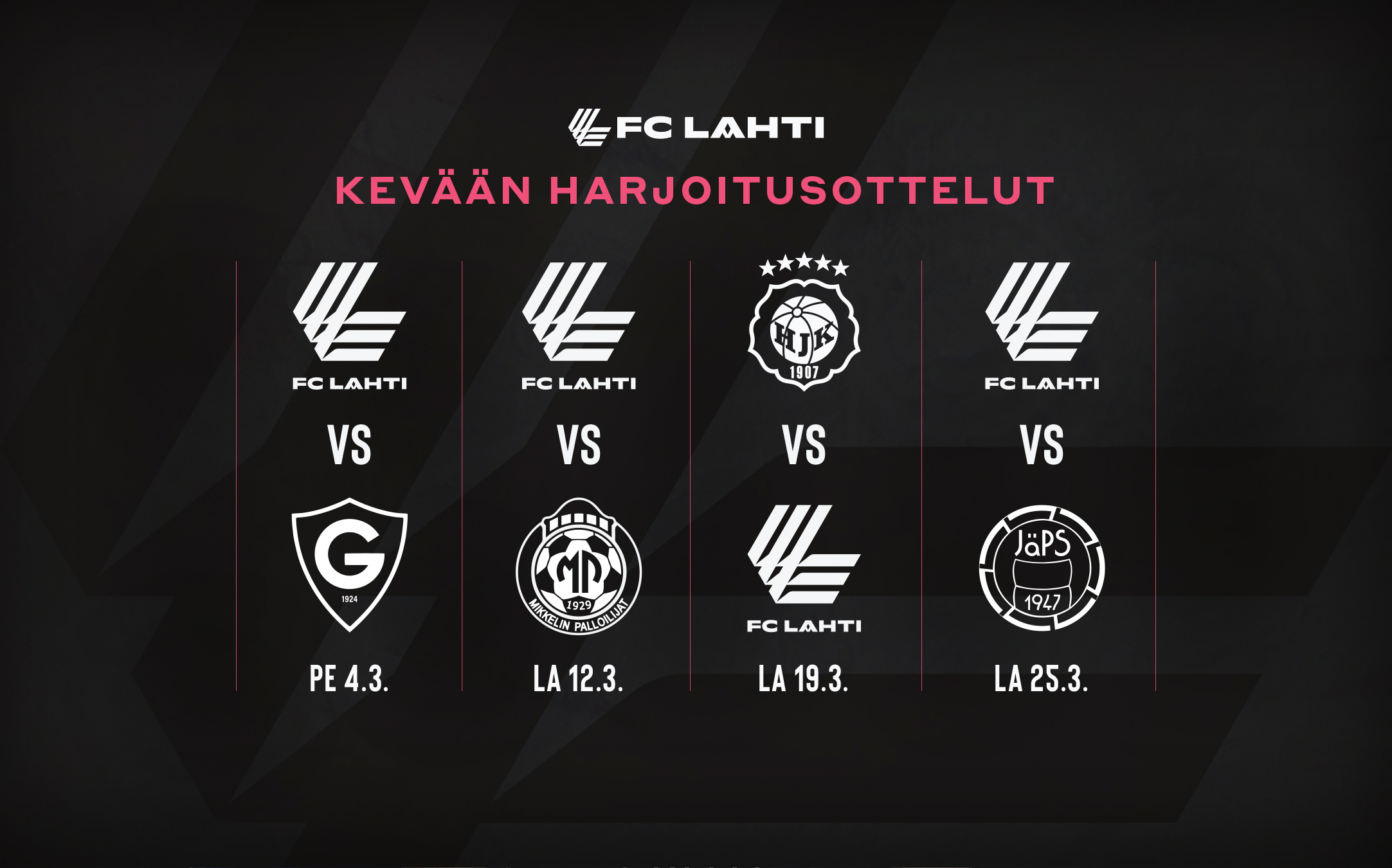 FC Lahti kohtaa maaliskuussa myös Mikkelin Palloilijat, Helsingin Jalkapalloklubin ja Järvenpään Palloseuran. MP-ottelu pelataan kotona 12.3. HJK-ottelu pelataan vieraskentällä 19.3. ja JäPS:n Lahti kohtaa Kisapuistossa 25.3.2022.