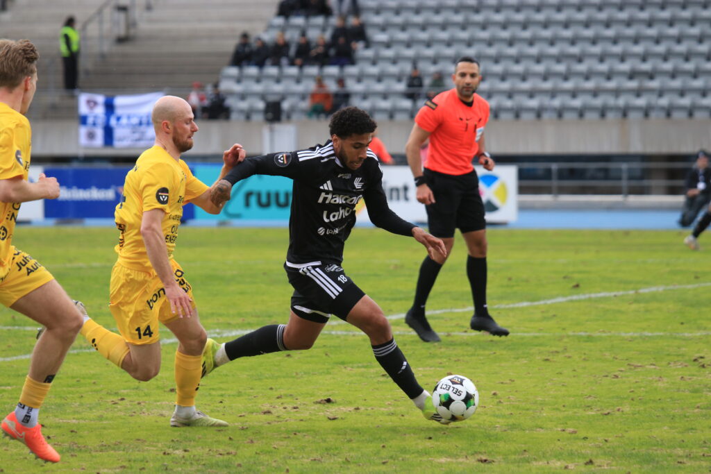 Oulu haki aktiivisesti tasoitusta loppua kohden. 90. minuutilla kulmapotkusta syntyi sekava tilanne: ensimmäinen pusku blokattiin Lahden puolustuksen toimesta, ja jatkopalloon pääsi Elias Kallio, jonka voimakas laukaus karkasi kuitenkin selvästi yli maalin.