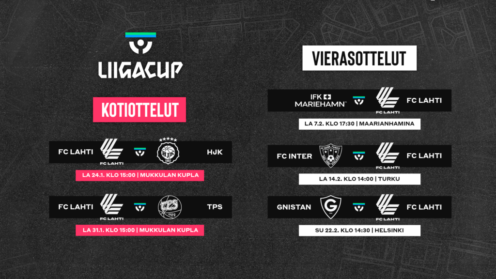 Kauden 2026 Liigacupin alustava otteluohjelma on julkaistu. FC Lahti on A-lohkossa. Lohkossa pelaavat lahtelaisten lisäksi Helsingin Jalkapalloklubi, TPS, IFK Mariehamn, FC Inter sekä IF Gnistan.