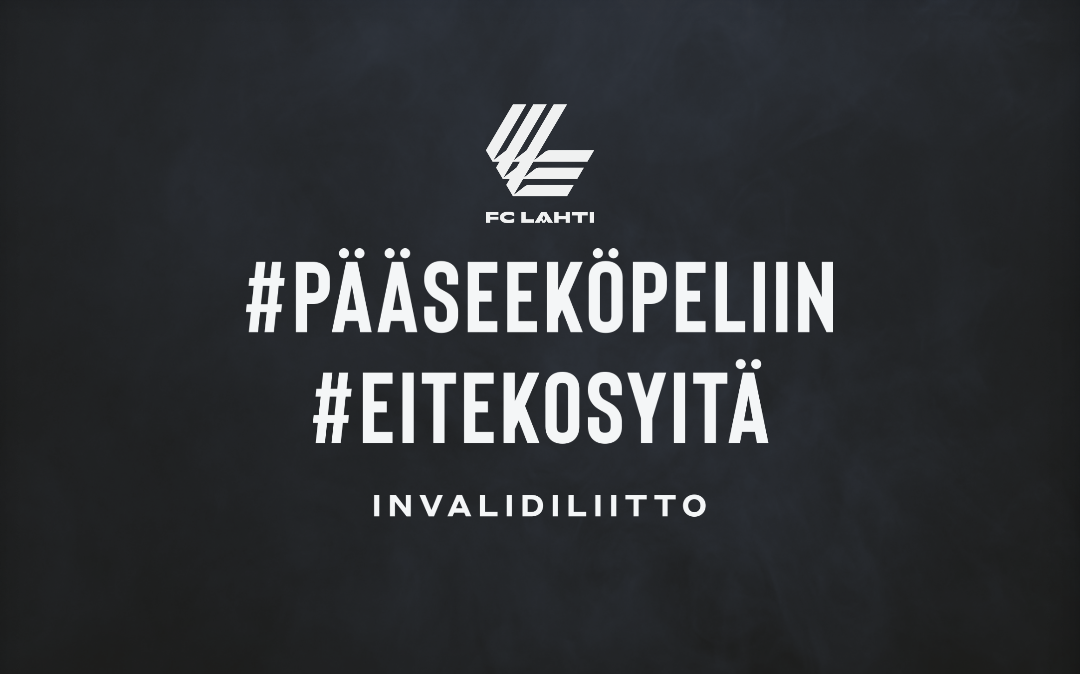 Pääseekö peliin – Ei tekosyitä -kampanja polkaistaan toden teolla vauhtiin 1.7. pelattavassa Lahti Soccer -turnauksessa. Samana päivänä pelattavassa FC Lahden ja Kuopion Palloseuran välisessä Veikkausliiga-ottelussa kerromme Jimi Toivosen tarinan yhteistyössä Invalidiliiton kanssa. Pallo on meillä, pelataan sitä niin, että kaikki pääsevät peliin mukaan.