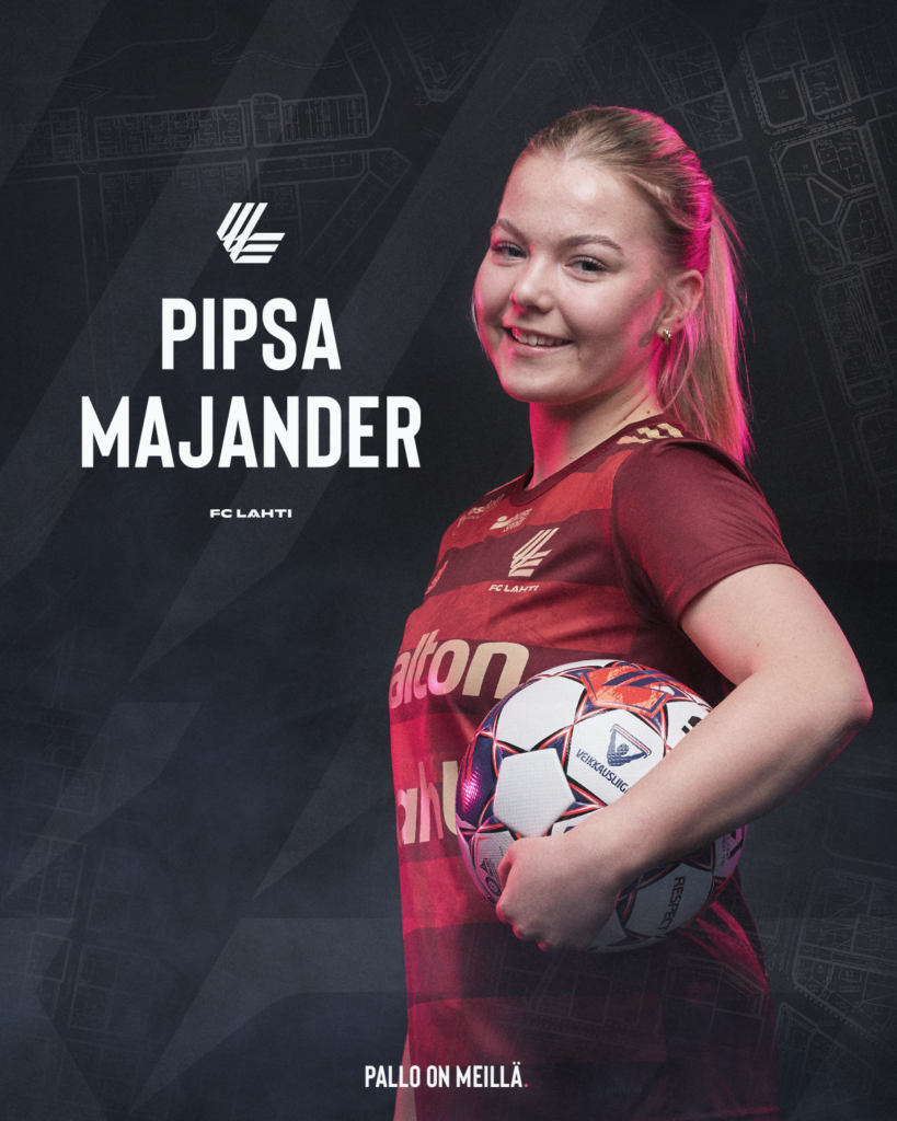 FC Lahti ja laitapuolustaja Pipsa Majander ovat solmineet vuoden jatkosopimuksen. Päättyneellä kaudella vasemmalla laidalla viihtyvä Majander pelasi lahtelaisten paidassa 15 Ykkösen ottelua, joissa syntyi myös yksi maali. Edustusjoukkueen pelien lisäksi Majander esiintyi myös FC Lahti U18 -joukkueen paidassa.