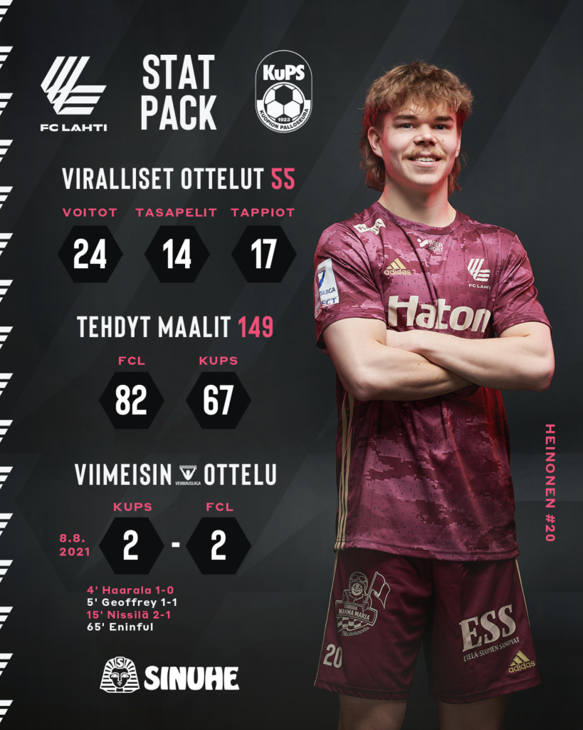 #2 Putki: FC Lahti on pelannut kahdeksan viimeistä KuPS-ottelua ilman voittoa. Edellinen voitto on kaudelta 2018, jolloin Santeri Hostikka upotti lisäajalla pilkun kuopiolaisten verkkoon. Rangaistuspotku oli tuomittu Henri Toivomäen käsivirheestä. Lahden pisin tappioton putki KuPS:a vastaan sarjaotteluissa kesti kaudesta 2002 aina kauden 2012 toiseen otteluun. Matkan varrelle mahtui 15 sarjaottelua. Lisäksi tuona aikana pelattiin kaksi joukkueiden välistä Liigacup-ottelua, joista Lahti voitti toisen ja KuPS toisen.