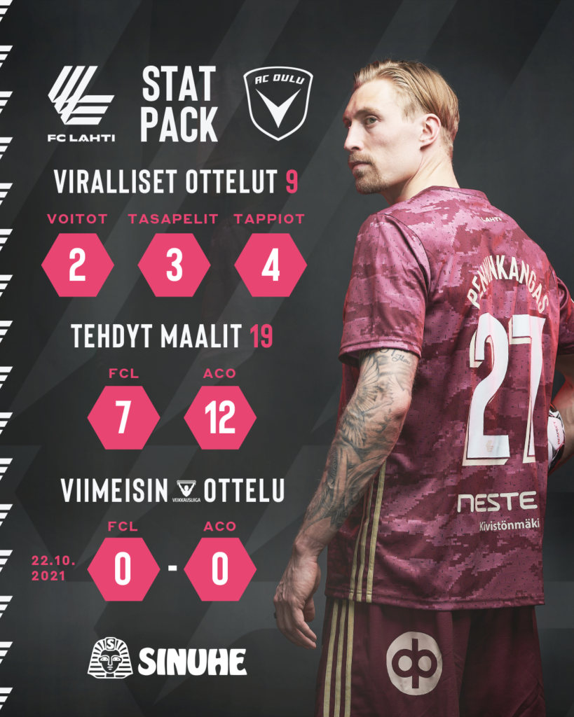 FC Lahti ja AC Oulu ovat kohdanneet virallisissa otteluissa yhdeksän kertaa. Lahti on voittanut otteluista vain kaksi ja Oulu neljä. Myös maaleissa oululaiset johtavat 7-12. Viime kaudella joukkueet kohtasivat kolmesti ja ottelut päätyivät kaikki tasan. Ainoastaan Oulussa pelatussa ottelussa nähtiin maaleja, kun ensin Macoumba Kandji vei Lahden johtoon ja Samu Alanko Zarta tasoitti ottelun loppupuoliskolla.