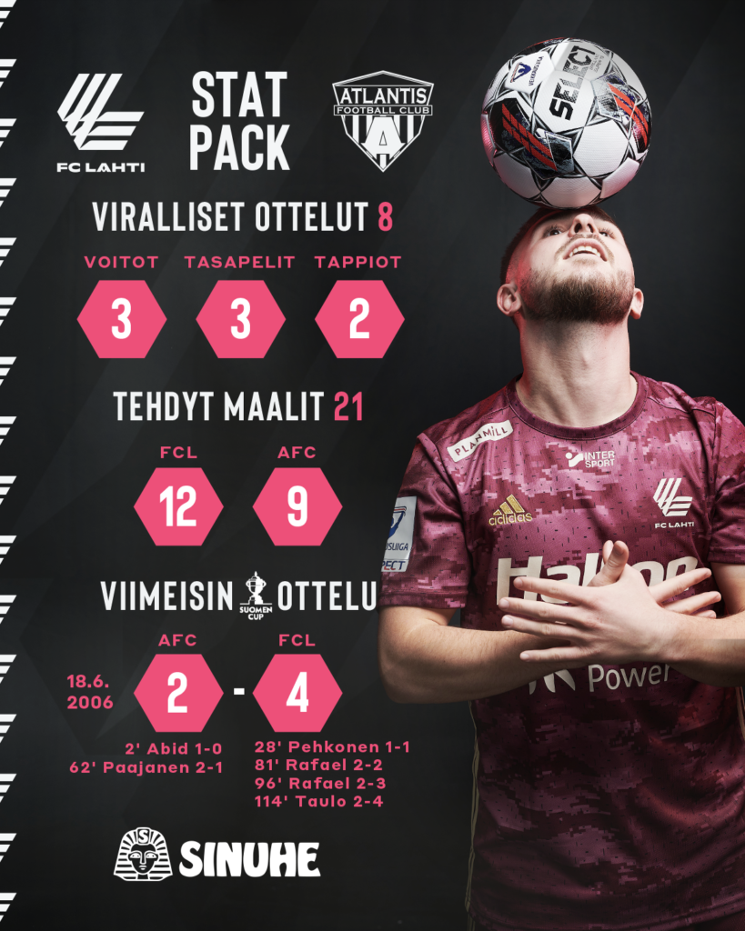 FC Lahti ja Atlantis FC ovat kohdanneet toisensa virallisissa otteluissa yhteensä kahdeksan kertaa. Lahti on voittanut kolme ottelua ja yhtä monta kertaa on päädytty tasapeliin maalierolla 12-9. Ensimmäisen kerran joukkueet kohtasivat Ykkösessä 1998, jolloin Timo Marjamaa viimeisteli lahtelaisosuman 1-1-tasapeliin päättyneessä ottelussa. Liigassa joukkueet kohtasivat kolmesti kaudella 2001. Edellinen kohtaaminen on kauden 2006 Suomen Cupissa, jolloin Lahti meni Rafaelin kahden maalin siivittämänä jatkoon.