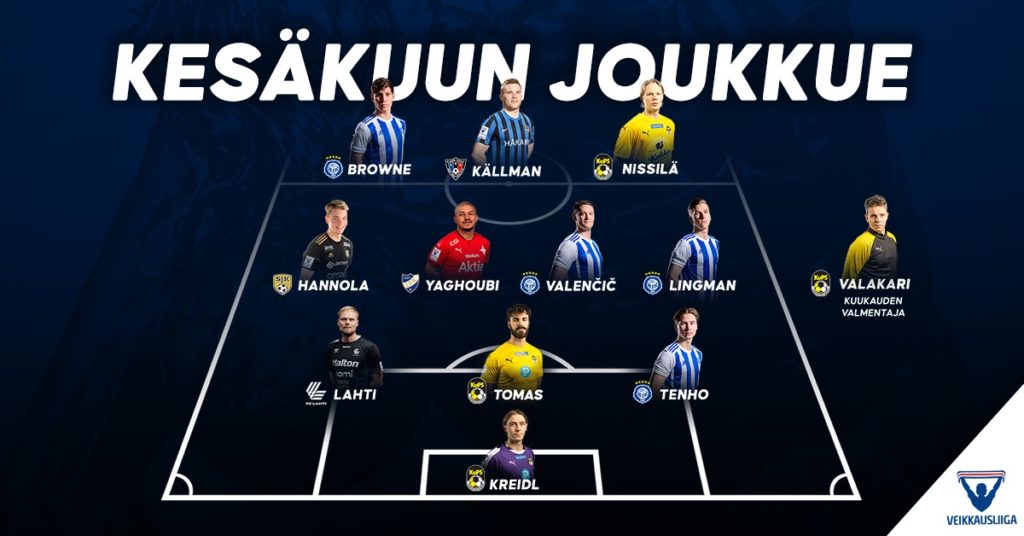 Kuukauden pelaajaksi valittiin HJK:n Filip Valenčič ja kuukauden valmentajaksi KuPS:n Simo Valakari.